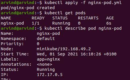 Here I’m using a simple nginx-pod.yml to create a pod
